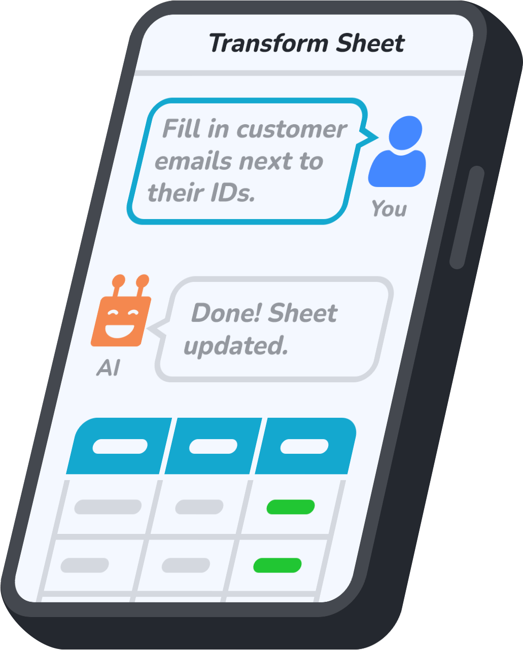 No more reliance on complex formulas to fill your sheets. Tags keep data points linked. AI can help modify your sheet however you desire.